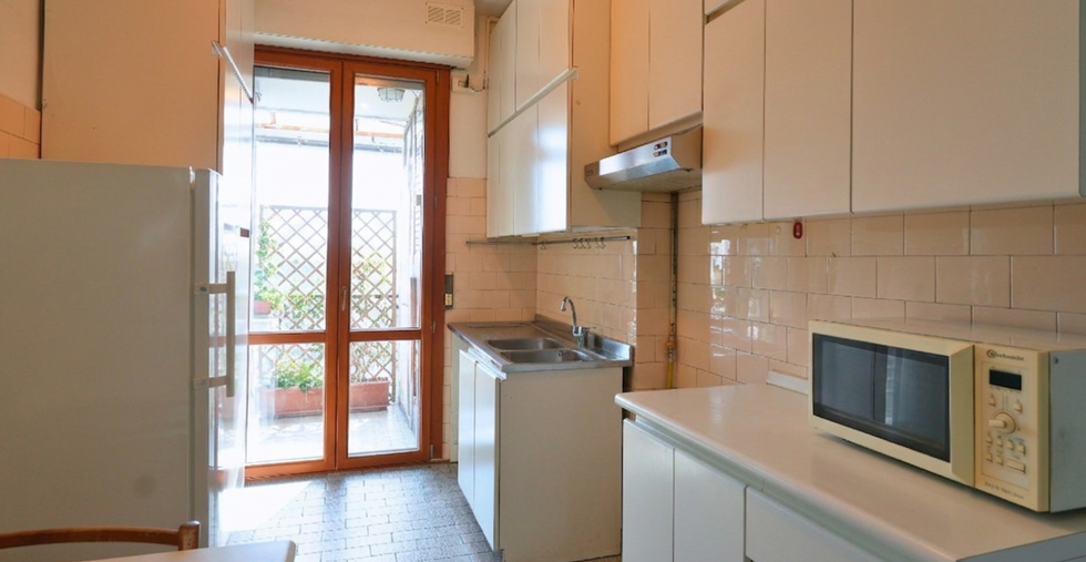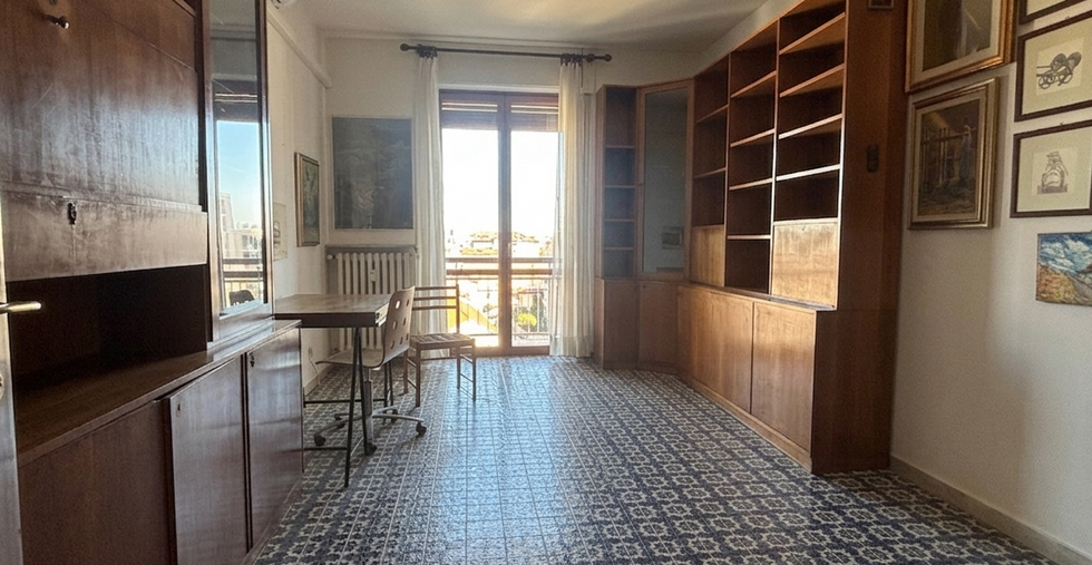 Piano ottavoIngresso su anticamera, ampio soggiorno con grandi vetrate e accesso alla balconata, cucina abitabile separata con balcone. Zona notte con due camere da letto (una con balcone), bagno finestrato e secondo bagno/lavanderia.