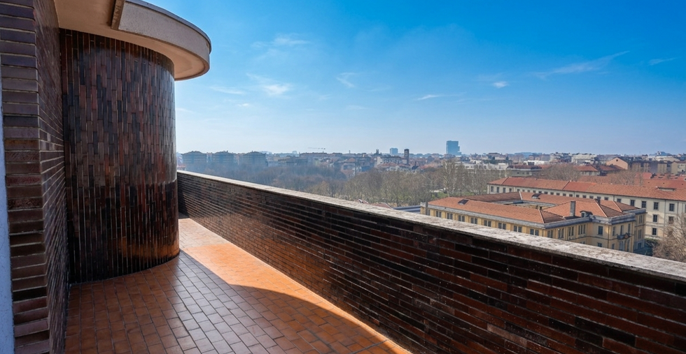 La proprietà gode di una vista panoramica a 360 gradi su Milano, con scorci e tramonti unici sullo skyline cittadino.