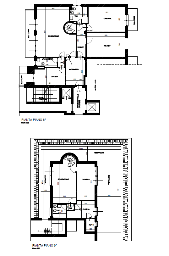 Piano nono (superattico)Collegato internamente, ospita tre locali versatili, un bagno ed un ripostiglio. Zona ideali per crearci una zona living di grande rappresentanza circondata dal terrazzo.