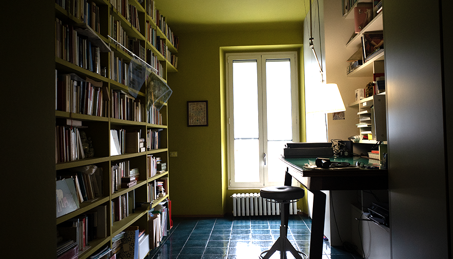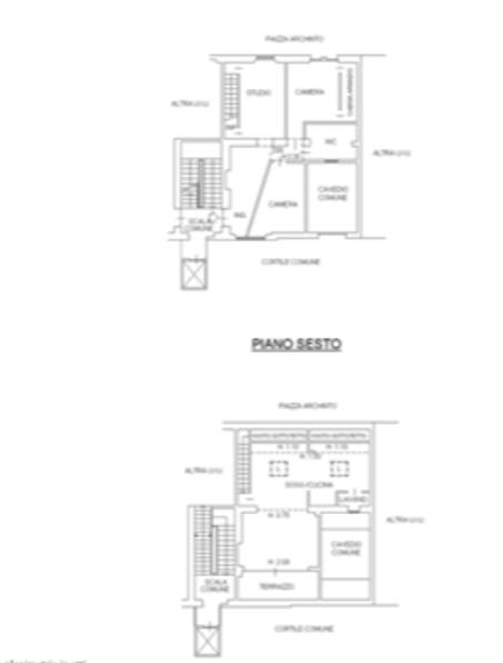 Ingresso dal piano V con 2 camere da letto un bagno ed e uno studio, dal quale si accede al piano superiore tramite una scala interna.
