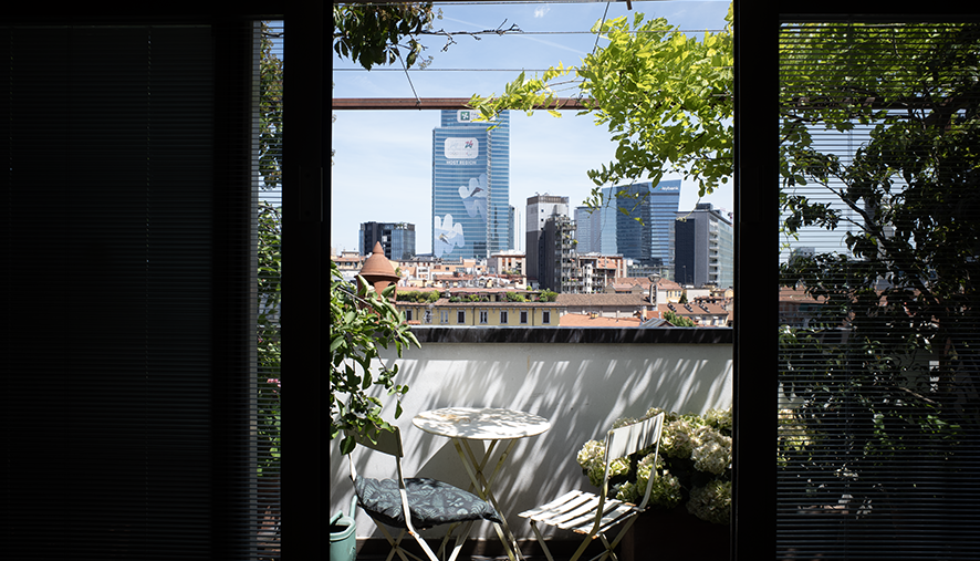 Il secondo livello ospita un ampio spazio living open space, con zona giorno e cucina a vista, caratterizzato da grande luminosità grazie alle ampie vetrate. Da qui si accede ad un terrazzo privato con vista panoramica sullo skyline di Milano. Completa il piano un bagno finestrato.